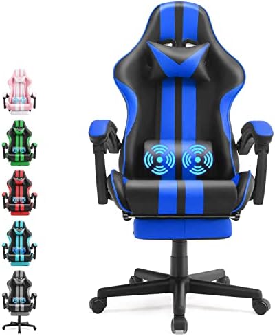 Amazon Com Ferghana Racing Style Pc Computer Chair Computer Gaming Chair E Sports Chair Ergonomic Office Chair With Height Adjustment Retractable Footrest Headrest And Massage Lumbar Support Navy Blue Home Kitchen