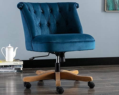Amazon Com Cimota Tufted Office Chair Velvet Armless Desk Chair With Wheels Comfy Rolling Adjustable Swivel Task Chair Modern Vanity Chair For Bedroom Study Room Navy Blue Home Kitchen